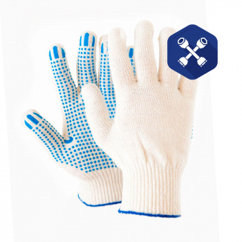 Перчатки ХБ белые (точка) 5-ти нитка с ПВХ (синяя/зеленая резинка) (ООО "Камские перчатки")