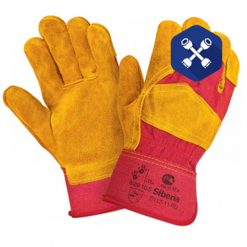 Перчатки утепленные (спилковые, оранжево-красные, манжета - крага для сварщика) ("Siberia")