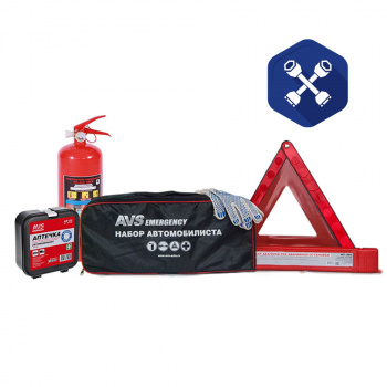 Набор автомобилиста (сумка, аптечка, знак аварийной остановки, перчатки, огнетушитель) ("AVS")